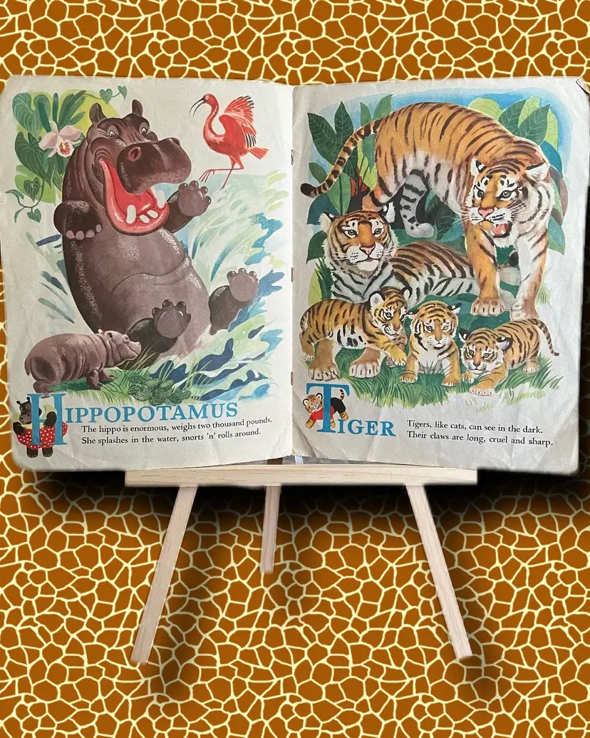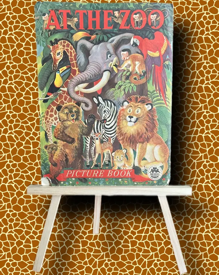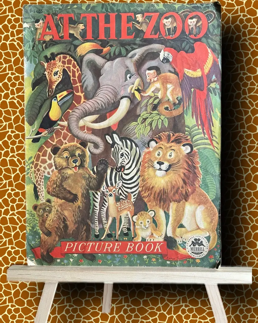 1946 Published by Merrill Linen-like texture pages Measures 13x9.75 Every page has amazing graphics!! I didnt photograph every page. Used condition- please look at photos. Some bending at edges/bottom of pages. Small tear at bottom left corner on back page- as photographed.